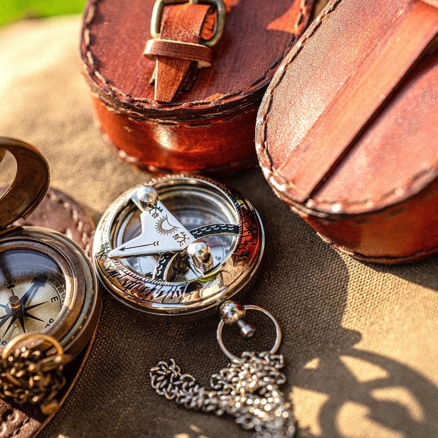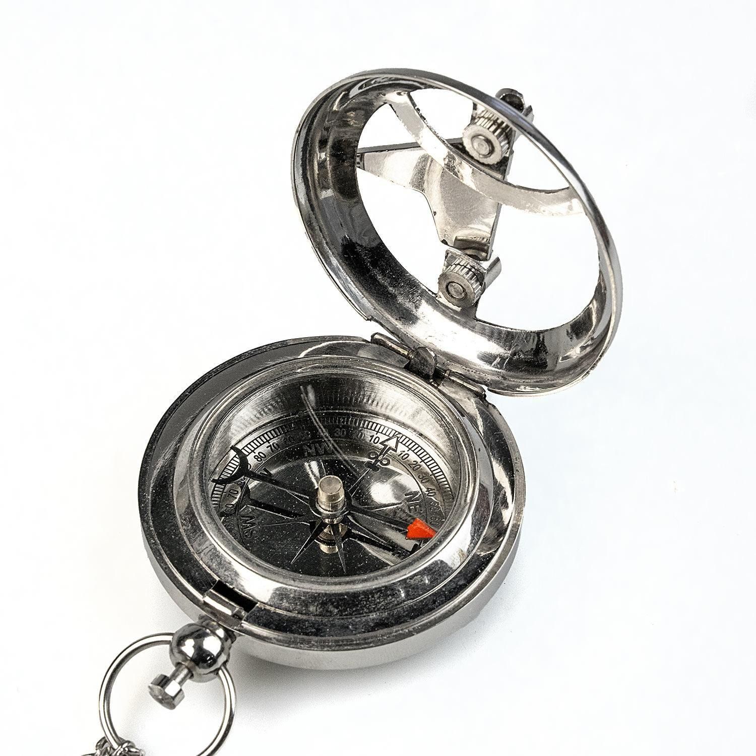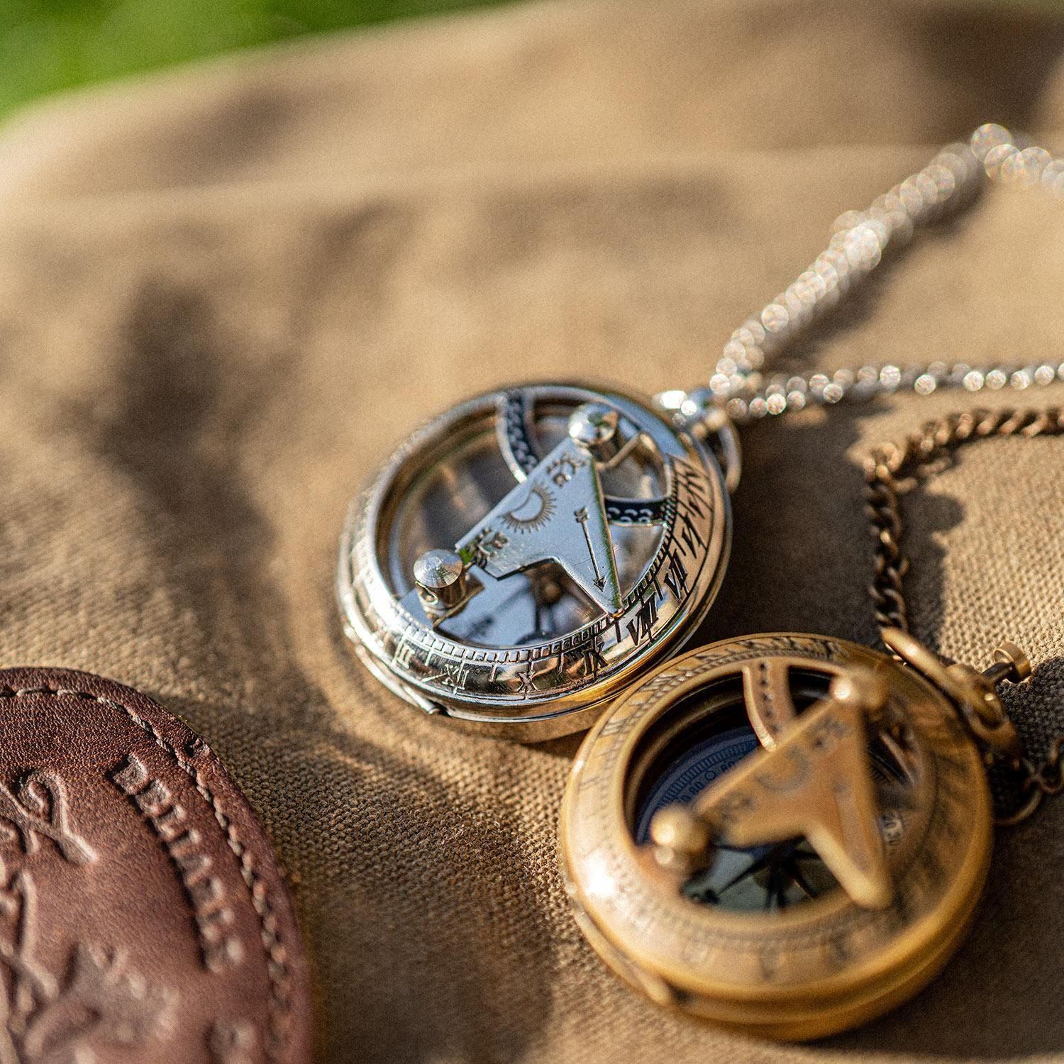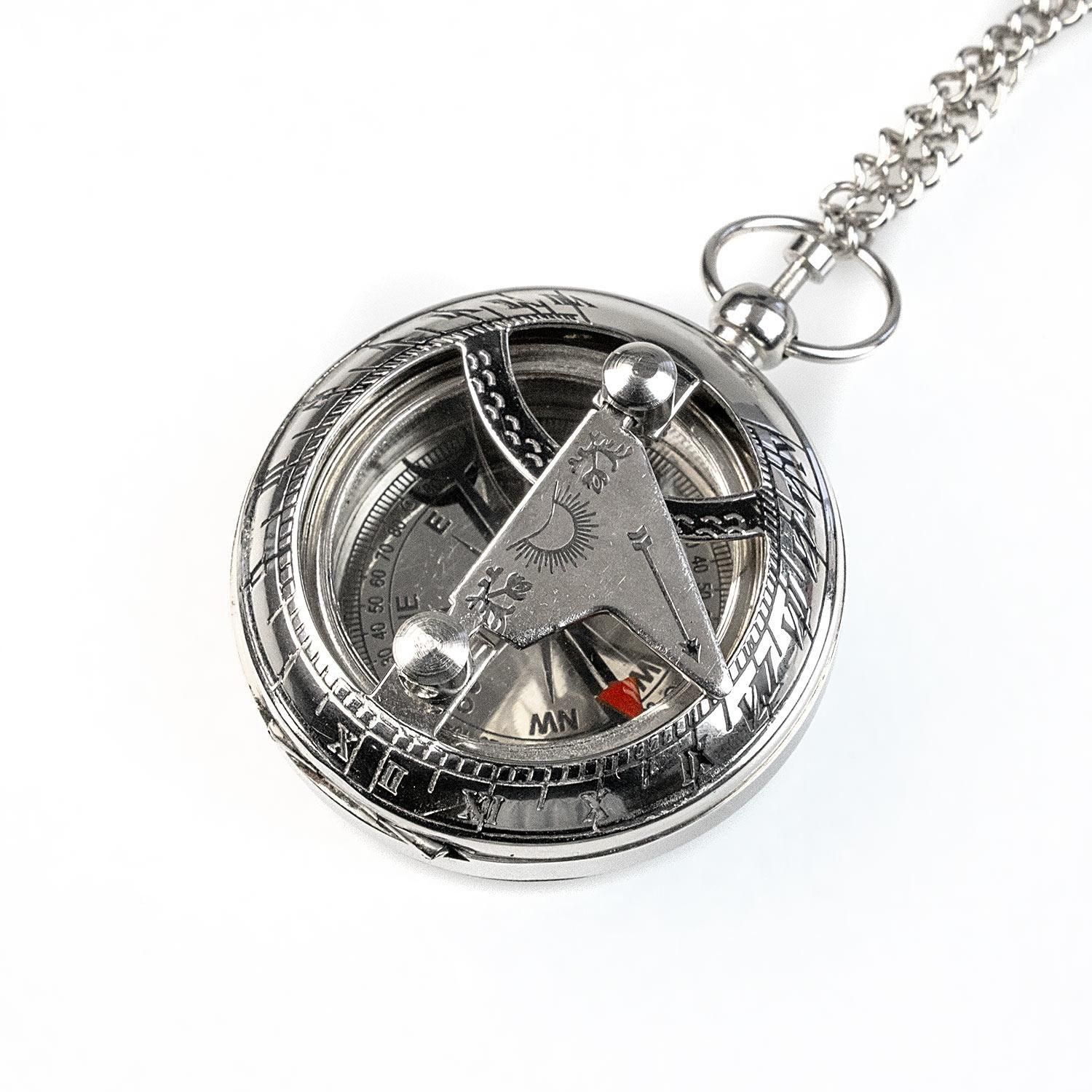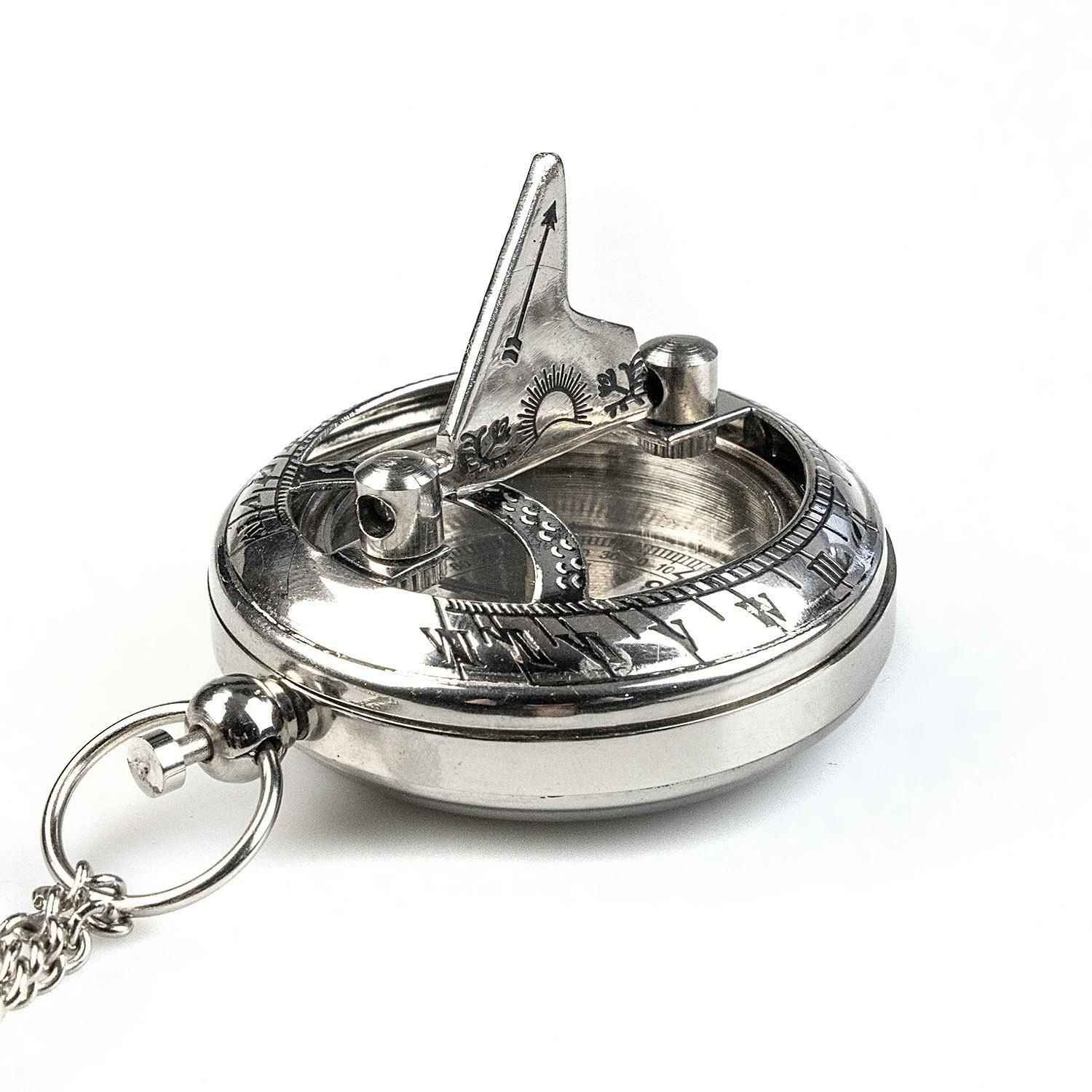 ブッシュクラフト 懐中コンパス日時計 シルバー